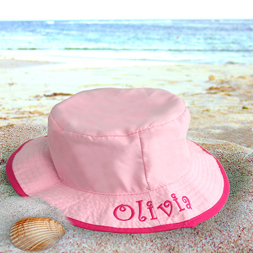 If you’re bringing your baby or toddler to the beach this summer, you’ll want to make sure they’re properly equipped to withstand the bright sunshine. Fortunately, our personalized beach hat will allow you to accomplish this task in style. The hat comes in pink or blue, and you can also select from numerous thread color options.