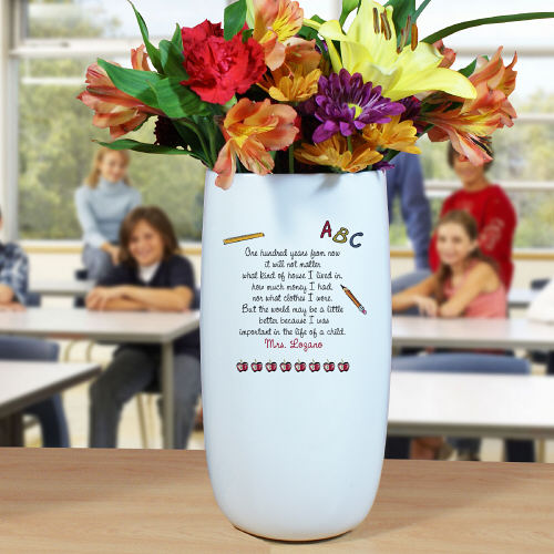Flowers can be a great way to add some color and beauty to the classroom. Having a nice vase to keep the flowers in is even better! This personalized ceramic vase features a heartfelt poem that captures the important role played by educators. A great teacher truly can make a powerful, long-lasting impact on their students!