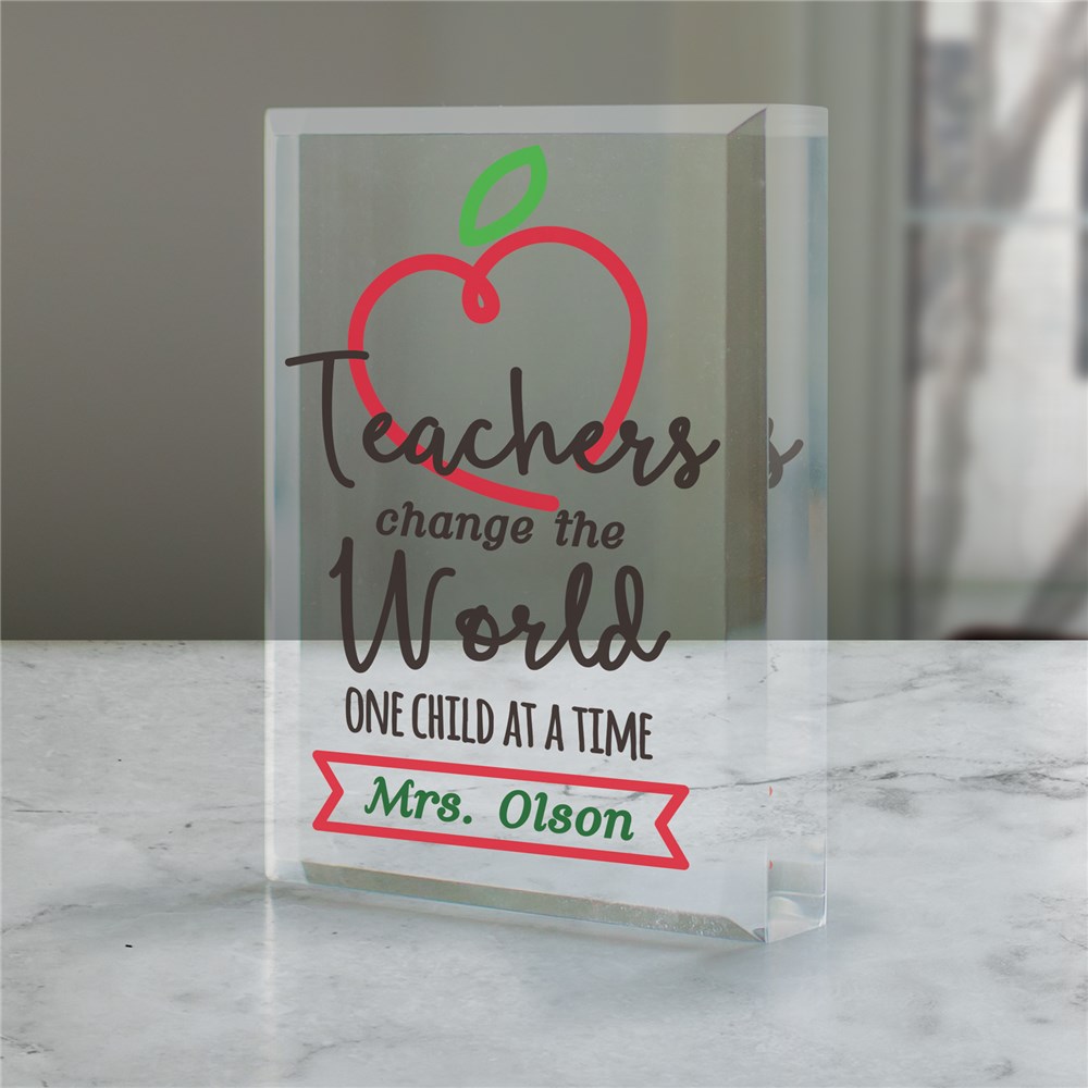 Many of us can vividly remember a teacher who made a significant and positive impact on us when we were in school. It’s no joke that educators really are changing the world for some of their students. This touching acrylic keepsake captures the essence of that truth. Personalize it with the teacher’s name for a gift they will cherish for years to come.
